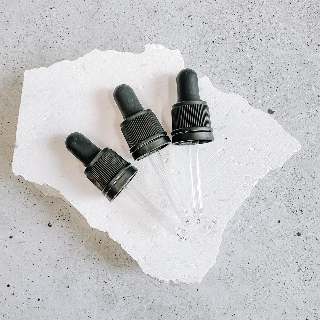 Our Conscious Dropper tops are perfect for re-using your empty 15ml essential oil bottles. Create serums, master oil blends and other Dropper Top recipes using your essential oils and ingredients from the Conscious Life. These are a great idea for less mess and for those oils that are a little slow coming out of the bottle. The dropper is made from natural rubber, and the pipette is made from glass with a classic black to finish it off.